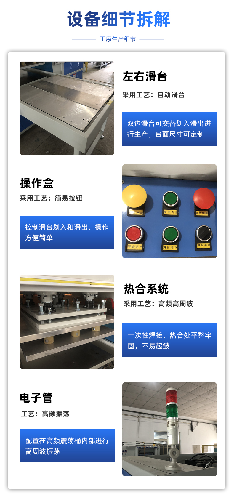 PVC運(yùn)輸液體袋高頻熱合機(jī) 咨詢熱線:+8613564342156 在線咨詢 產(chǎn)品詳細(xì) 本信息鏈接地址:/gaozhoubo/426.html 標(biāo)簽: 相關(guān)推薦: 上一篇:TPU足球貼皮高頻熔斷機(jī) 下一篇:能馬桶蓋座鋁箔加熱片熱合機(jī) 用手機(jī)看 拍下二維碼,信息隨身看 試試用手機(jī)掃一掃, 在你手機(jī)上繼續(xù)觀看此頁(yè)面。