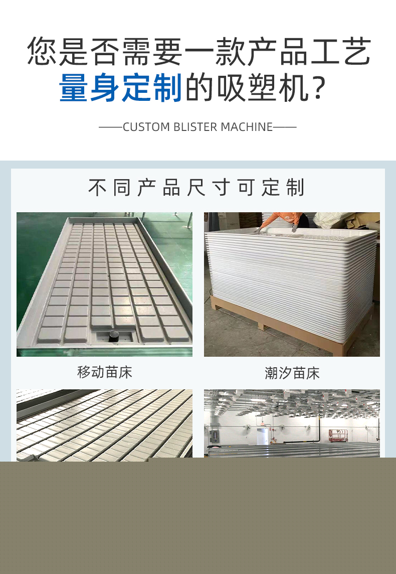 相關(guān)推薦 汽車門板內(nèi)飾全自動(dòng)厚片吸塑機(jī) 種植養(yǎng)殖苗床厚片吸塑成型設(shè)備 廠家供應(yīng)咨詢客服可免費(fèi)試樣工藝 潮汐苗床厚片吸塑機(jī) 皮卡車貨箱寶厚片吸塑機(jī)